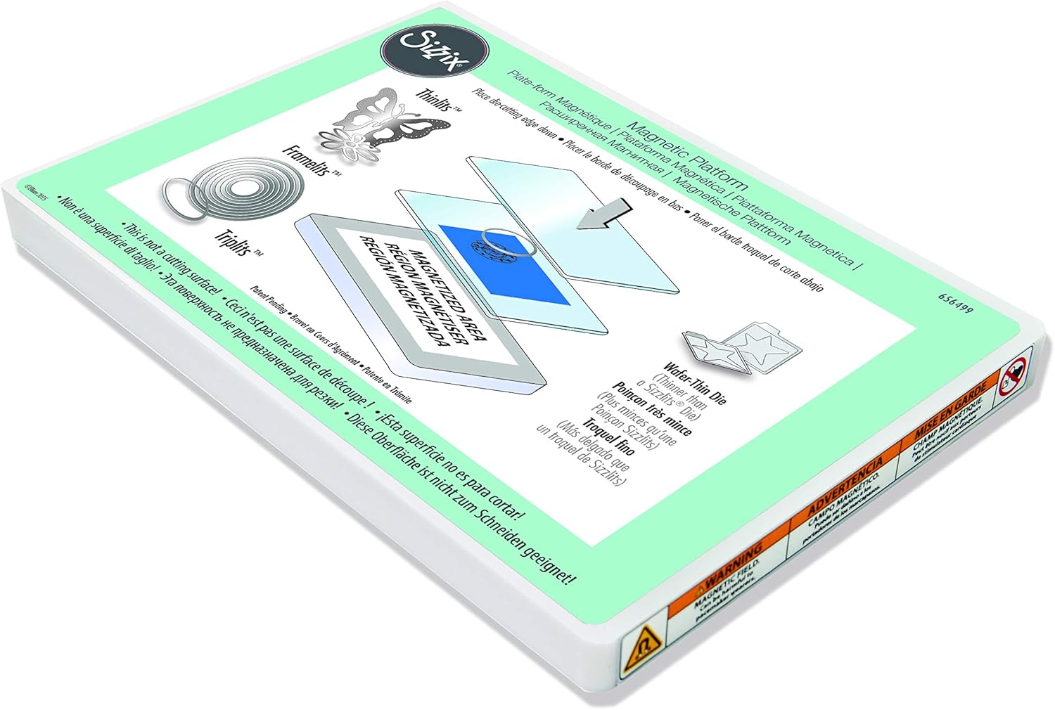 Tamaño de la plataforma: 6 1/8 x 8 7/8 x 5/8 in (15.56 x 22.54 x 1.59 cm). Compatible con Big Shot, BIGkick, Vagabond 2, Big Shot Plus y Big Shot Pro.